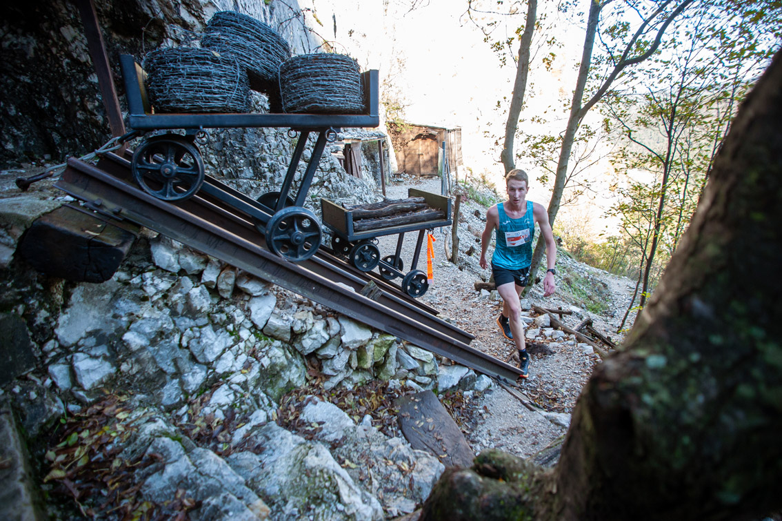 Na tem odseku se asfaltirana podlaga zamenja z tehnično zahtevno enoslednico, ki vodi skozi kamniti teren z zgodovinskimi kavernami iz obdobja prve svetovne vojne. Vzpon proti vrhu je intenziven in zahteva dobro tekaško tehniko, saj so posamezni odseki strmi in posuti z gruščem. Med vzponom se tekačem odpirajo izjemni panoramski razgledi na smaragdno reko Sočo ter Sveto Goro v ozadju.